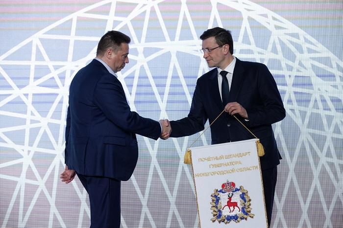 Глава Нижегородской области, секретарь нижегородского регионального отделения партии «Единая Россия» Глеб Никитин вручил Почетные штандарты губернатора предприятиям, показавшим наилучшие результаты по итогам работы в 2025 году.