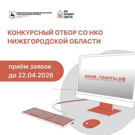 Прием заявок проходит на конкурсной платформе ннов.гранты.рф до 23.30 22 апреля. Итоги конкурсного отбора будут подведены в июне. Реализацию проектов, получивших поддержку, можно начинать с 20 августа 2026 года. Подробнее о конкурсном отборе можно узнать по ссылке: https://ннов.гранты.рф/.