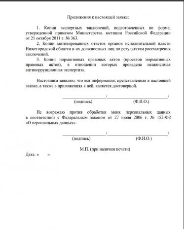 - копии мотивированных ответов исполнительных органов Нижегородской области и их должностных лиц по результатам рассмотрения экспертных заключений.