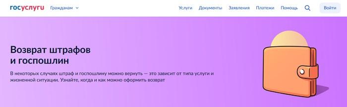 Жизненная ситуация «Возврат штрафов и госпошлин» доступна на портале «Госуслуги»