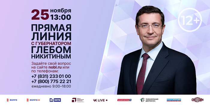 17 ноября 2025 Прямая линия с губернатором Нижегородской области Глебом Никитиным пройдет 25 ноября 2025 года. |