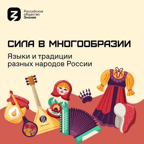 Российское общество «Знание» с 14 октября по 14 ноября проводит акцию «Сила – в многообразии», приуроченную ко Дню народного единства. Акция представляет собой проведение серии просветительских встреч во всех регионах страны, посвященных языкам и традициям народов России. Общество «Знание» подготовило методические материалы для проведения таких лекций.