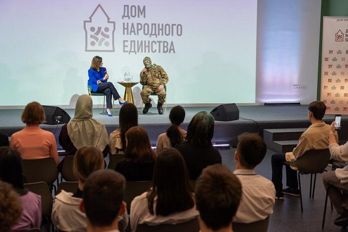 В Доме народного единства прошла встреча участника специальной военной операции с нижегородскими школьниками. В Нижний Новгород боец приехал в отпуск. На встрече со старшеклассниками-активистами «Движения Первых» рассказал о службе, о том, как стал добровольцем, и почему получил необычный позывной.